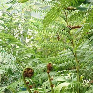 またまた台風が来ているようです・・😓 東京・新宿御苑大温室の ジュラシックゾーン??にて。 下のほうのぐるぐるは、シダ類かな??名前はわかりません😅 ゼンマイの大きいのみたい😆✨❣️