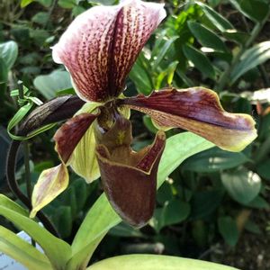 今日のお花 パフィオペティラム 渋い色合いです❣️