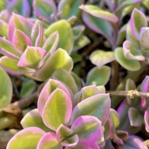 pic1⃣ Echeveria agavoides 'Ebony' エケベリア・エボニー しばらく見ていなかったが、 ぐんぐん大きくなってて驚いた😳 下葉のシミが気になるが、 爪やエッジが赤くなってきてステキ😍 もっとぐんぐん赤くなってね〜❣️ pic2️⃣ DAISO産クラッスラ (Crassula 'Purple Butterfly')? (Crassula nudicaulis var.platyphylla)? 水が吸えてなかったようで、シワシワだった DAISO産クラッスラ よく見たら(pic3️⃣)気根がボーボー😳 こりゃ根っこがSOSなのでは😱⁉️ と、18日に急遽植え替え💦 根っこの整理をして、ついでに株分けもして スッキリ✨ 無事にシワも取れてきて、一安心ε-(´∀`;)ホッ …でも気根も赤くて綺麗だったな🤭💕 ぐんぐん大きくなってるエボニーで 🏷ぐんぐん祭り エボニーの爪・エッジと 赤いDAISO産クラッスラで 🏷真っ赤な火曜日 🏷ありがたハッピー❤︎100均 pic2️⃣のレトロペコちゃんで 🏷ペコちゃん祭り 参加させていただきます(⋆ᴗ͈ˬᴗ͈)” 番外編 pic4️⃣5️⃣ 昨日、横浜公園で開催している BALL PARK Xmas yokohama kannnai 2025 へ行ってきました🎄 まだ暗くなる前でしたが、 Xmasイルミネーションが綺麗でした✨ ※消しゴムマジックで人消してます🙇♀️