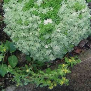 夫が「見て見て!ハート‼」と言って指差したのがこれ。 セダムミルクゥージ。 元気がなかったので東側の軒下に地植えしてたんです。 なんでハートになってるんだろ? しかも夫、よく気づいたな。
