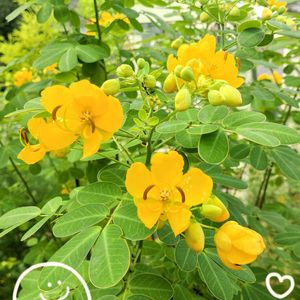 今年も元気に笑っているような顔でコバノセンナが咲いて賑やかな庭です☺️💕あまりのっぽにならないようにと娘が剪定してくれたけど…蕾がたくさんついていて良かった〜🙌💛