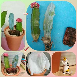 おはようございます👋😃☀ 今日はいいお天気ですが少し風があって肌寒く感じます😣 母の日に貰ったサボテンの植え替えをしました😊 GSの要。さんのご指摘通り土がガチガチに固まってたので鉢の内側を一周キリでブスブスしながら何とかポットから出して根っこに当たらない様に固まった土を取り除き新しいサボテンの土で植え替え完了👍 お水は根が落ち着いた1週間後😌 それまでティッシュペーパー1枚を被せて風通しのいい場所へ置きます😊 ティッシュ風で飛びそうなんで爪楊枝で止めました😅 後は祈るのみです🐱 どうか上手く育ってくれますように🙏 引き続きアドバイスよろしくお願いします🙇 それからサボテンの名前もわかると有難いです🙇 名前を教えて下さったkaorioka2さん💓ポコアポコさん💓 ありがとうございました🙇