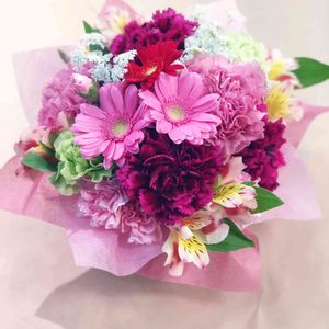81歳になるおばあちゃんへの、誕生日プレゼントだそうです。ピンク系でまとめてみました。ど素人作品ですが、いかがでしょうか?