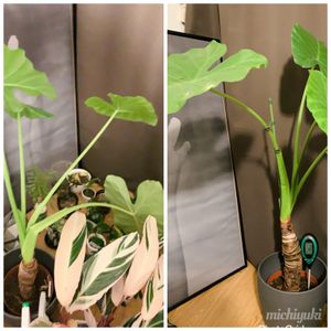 マジか… 日光浴させて出て家に帰ってきたら クワズイモさん葉の重みで折れて前かがみで突っ込んでた…😱 取り敢えずあった支柱を刺して園芸用結束バンドで添えたけど、、、 これからどうしたらいいのでしょう?
