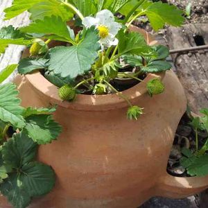 イチゴポットのイチゴ🍓が今年はいっぱい成りました♡早く赤くならないかな🎵