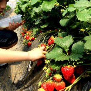 群馬県富岡市の高田いちご園で、まゆいちご(淡雪)を狩り食べました。写真にも載っていますが、まゆいちごは、白いちごの品種で、桑の葉を肥料にしていることと、見た目の白さが富岡製糸場の「まゆ」にちなんで銘々したそうです。ほんのりと桜色が食べごろで赤いいちごより酸味が少なくて甘くて美味しかったですよ。