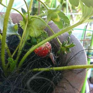 春のイチゴは失敗に終ったけど秋イチゴは成功しました。 可愛いでしよ 最近撮ってなかったわ いっぱい投稿しよう またホームセンターでイチゴの苗を買ってきて5個も植えました。。 来年の春はイチゴ収穫だー