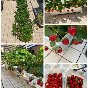 孫貸切のイチゴ狩り🍓 今日孫が来る予定なので、イチゴを取りやすくプランターの配置変えしました😊 夕方からイチゴ狩りスタート。 中・小粒サイズがかなり取れ、殆ど孫3人で食べてしまいました😋 第2弾も出来そうです。