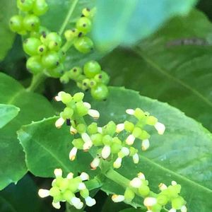 千両の花、ちょっと地味で、気がついたら千両ベビーがたくさんなってます。🌱🌱🌱 今年も 赤い実沢山つけて欲しい〜❣️
