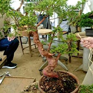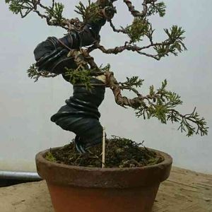 枝整理後。まだ不要な枝はありそうだけど、あとは盆栽教室でアドバイスもらいながら曲げるとします。