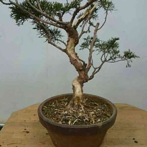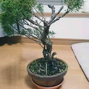 真柏です。枝が間延びしていたので縮小中です。樹高16cm。