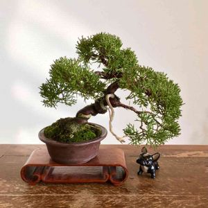 挿し木から作った真柏です。10年くらい経っています。樹高11cm。