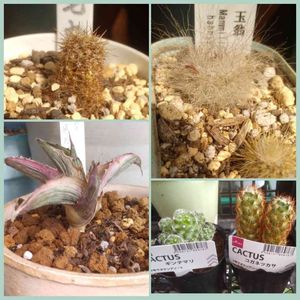 こんにちは☀ 今日は爽やかな秋日和といった感じです✨ 先程タイムラインで気付いて慌てて撮影しました📸 🏷毎月7日はアガベの日 🏷勝手に7日は爪エッジ棘の日 に参加しま〜す🤗 我が家の唯一のアガベ様🙏 まつぴよさんに貰った五色万代錦さん💗 しっかり根付いた様です👍 そして我が家の棘軍団🌵🎶 みちのすけちゃんに貰った短毛丸くん🌵 カインズで一目惚れしてお迎えした玉翁ちゃん🌵 お迎えした時からポットに2つ入ってたんですが何か種類が違うみたいで小さい方は棘だけ💦 大きい方は長い毛がのびてます😅 よく見たら色も違う💦 そして最近ダイソーからお迎えしたとこのギンテマリとコガネツカサ🌵🌵 これは寄せ植えにしようかと思ってます🎶
