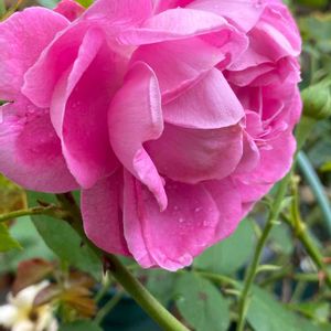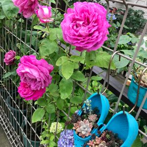 雨の中、ご苦労様です💦 綺麗に咲いてくれたものです💓 1800年代に作出されたオールドローズにしては強くて、繰り返し咲いてくれるので、初心者🔰のわたしには有難いです😅