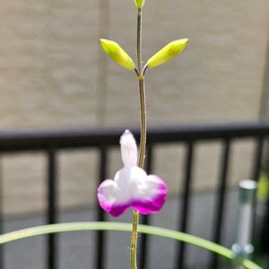 【サルビア グレッギー アメジストリップス】 アメジストリップス、咲きました💜 昨年購入してから数個しか咲いてません💦 今年も花数は少なそうです😅 2️⃣マルバ やっと蕾を確認できたぁー🩷 待ちに待ってたんよー てか私の背をはるかに超えてます😅