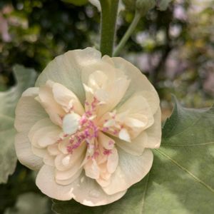 正真正銘の全く見た事の無い花が咲きました👀 一昨年苗を買って3年目に初めて花が咲きました🌸 高さは50センチから100センチと書いてありましたが、とっくに私の身長を超えてます😨 アオイ科なので咲き方がタチアオイに似てます😅