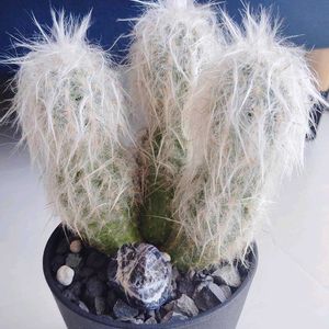 これ なーんだ? 白くて ふわふわ もっふもふ𓂃 𓈒𓏸 𓋜 . * ずっと触ってたい(*≧艸≦) 答えは② ね❣️ 鉢とのバランスが悪くて 倒れそうだったから 鉢まし したけど それでも なんだかなぁ 安定感 微妙だわ^^; あ、そうそう うちの🌵先住サボじぃより ふっさふさなんだ〜ꉂ(ˊᗜˋ*)