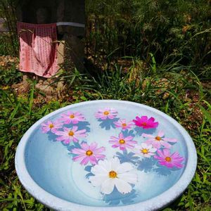手水鉢に浮かぶコスモス おはようございます🎵 お天気 下り坂… 恵みの☂️ 昨日は暑かった🔥 暑さてで 📱🤳使えなくなる ハプニング~😨 『涼』のお福分け~🐼 般若寺(奈良市)にて