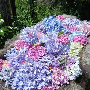 秋田のあじさい寺・男鹿の雲昌寺にて② 手水鉢が紫陽花でいっぱい♡ キラキラして綺麗でした😊