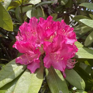 今日のぶらり散歩で 出会ったお花 ② シャクナゲ 15 センチくらいの ボール状 明るいマゼンタ色🩷