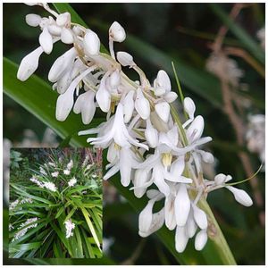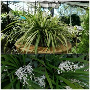 斑入りノシラン(スノードラゴン)葉っぱも花も もりもり〜 でも、涼しげでしょ💚🤍