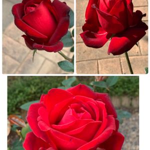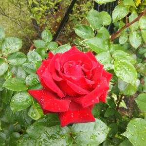 うちの真っ赤に咲く薔薇です。 今年2月に庭に地植えして育てています。 初心者な私のお世話でも、うどん粉病、ハダニ、黒点病にも耐えてくれてます。夏は日影が少なくなり、移動させたくても、鉢植えにしなかったから申し訳ない気持ちで…。でも、よく咲いてくれるんです。ほんとに大好きです。