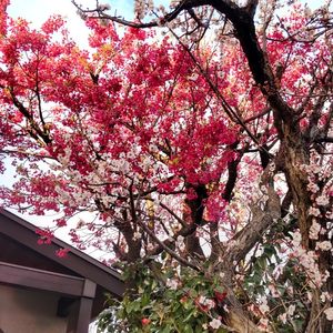 寒緋桜と豊後梅 紅白で春を彩る