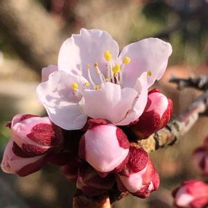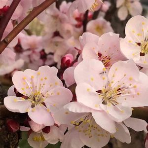💗今日のお花 ウメ💗 過去pic.です。 『豊後梅(ぶんごうめ)は、梅とアンズの交雑種、原産地は大分、耐寒性が強いため、東北地方などの寒冷地で多く栽培されている 花は淡紅色で、一重か八重咲きになり、花梅としても楽しめる 果実は大粒で果肉が厚く、種が小さく果肉の割合が多い 酸味が少なく、梅干のほか梅ジャムなどに利用される 果重40~60gで大実、収穫時期6月中旬~ 自家不結実性のため、授粉樹が必要』 だそうです😊