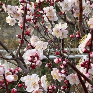 週末土曜☀️、果樹園の梅の花がいい感じ😃。 甲州小梅は7分咲き、南高梅は2分咲きといったところか🤔、青軸梅も1輪咲いていた😊。 春の始まりだねー🌸。