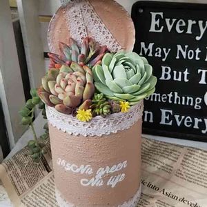 こんにちは☀️☀️☀️ 朝から暑くて🔆 ̨ ̨ ₍⌯́⌓⌯̀ ₎ ダイソーで手作り風のリメ鉢見つけました(≧︺≦)b 好きなグリーンでいい感じです(人*´∀`)+・。* こまめな水分補給を忘れずに( ̄^ ̄)ゞ