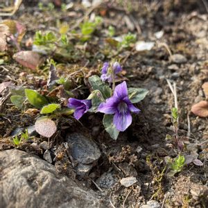おはようございます☁️ 昨日の丘陵地で 段下の道端に スミレが咲いていました。 まだ寒いので、地面すれすれで 葉も小さいお花も縮こまってる 感じですが、スミレを見つけると 嬉しくなります。 ここに毎年咲いている ノジスミレ💜💕☘️ 3/7