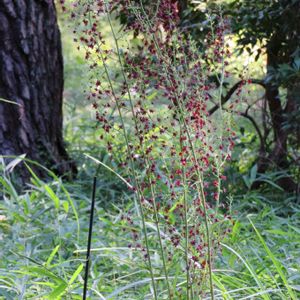 ホソバシュロソウ 暗い紫褐色の、チョコレートにも似た色の花🟣これは、花柱は3つに割れて、雄しべの葯から黄色い花粉を出ている両性花だ🟡 花柄が長いところを見ると、ホソバシュロソウやね♬(人゚∀゚*)ラッキー♪割れる前の葯が赤いので、真っ赤な火曜日🏷つけさせてね🔴 花被片の基部から半分ほどは、油絵の具を塗り重ねたように分厚くなっているのも興味深い⚫ 茎には白い毛が生えているのだけれど、こういうのを星状開出毛というのだそうな※※※ 決して良い匂いとは言えず、むしろ臭いと言った方が適切だと思うが、それを好むムシもいて、ハエが何匹も集まっていた( ˘•ω•˘ )