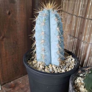 ピロソケレウス アズレウス 水色🩵の柱サボテン。 倍くらいの高さになりました🥰
