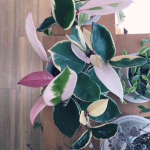 我が家のお花さん🪴🌸 昨秋に水栽培して 今春鉢植えした ホヤ・カルノーサ・リップカラーです🪴 この美しい葉っぱが大好きで 四半世紀 育てています。 花座はありますが我が家の ホヤちゃんは とても気まぐれなので 咲いてくれるか どうかは ホヤちゃん次第です🪴🌸