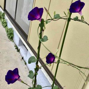 昨年の秋から冬近くまで咲き続けた紫色の丸葉朝顔。 葉っぱはハート型で西洋朝顔みたいな子でした。 昨年一番最後に咲いた種類の朝顔のこぼれ種から、一番最初に発芽しました。 西洋朝顔は日が短くならないと咲かない習性がありますが、この丸葉朝顔はどうだろう。 昨年は単に植えるのが遅かったから、咲き始めが秋だったけど、、 今年はこんなに早く発芽しちゃって、夏に咲いてくれるのかなぁ。