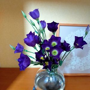 Eustoma ユーストマ 一重咲きのトルコキキョウ リシアンサスとも言うそう 花言葉は「優美 清々しい美しさ」 紫の花言葉は「希望」✨ 濃い紫の花色と スッキリとした花びらの感じに吸い寄せられました💜(笑) スーパーマーケットでの買い物途中🛒 切り花コーナーには華やかな八重咲きの お花たちもたくさんだったのに…… シックだけれど清廉な印象✨ 和洋どちらにも似合う雰囲気を感じます (*˘︶˘*).。*♡