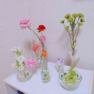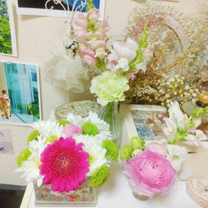 今月未投稿のpicがたまっているので、娘の歯医者待ちの間にアップしまーす。 五月人形スペースが空いたので、お花を思いっきり飾れる♡ 今月のお花たち❀