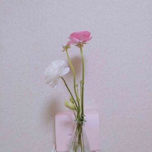いつもだったら、白いリシアンサスを買うところが こないだ母に届けた花が白いバラだったことを思い出し 白が続いちゃうな…と考え直してピンク~ワインカラーの方を選びました♩ 半分は母に 残りの半分は自分のところに 家にあったカラー 合うかも♡と思い束ねてみたら なかなかいい感じにまとまりました✨