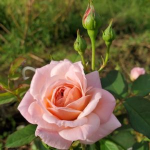 こんにちは~(*^o^*) 今日は曇っているようで 暑いです😆 地植えのピノキオ🌹🌿 コガネ虫見つけたら 踏みます😔