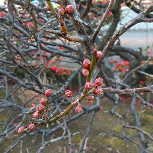 この寒さにじっと耐えながら梅の木は可愛いらしいピンクの蕾をようやくつけました。ひとつひとつ小さくて健気でパッと花開くとあたり明るくなります満開の梅の花に遊びに来るメジロの姿を思い浮かべ1人で春の梅の木を想像で体感しました笑
