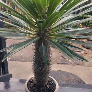 パキポディウムラメリー 昨年表に出して無く徒長気味なパキポディウムですね〜😅 水やり少なめにと😅 今年は棚から台の上に☀️浴びてもらいましょう! メタボになれるか⁉️😆