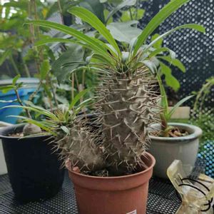 前から狙っていたパキポディウム。ネットで購入したら、8つに分岐した立派な株が届きました!