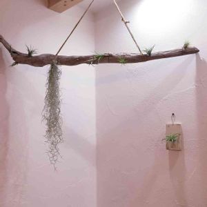 リビングの一角に吊るしてみました😊 エアープランツを流木に針金で付けるのってなかなか難しいです〜💦