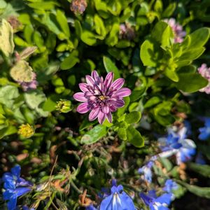 10件近く探して手に入れたダブルオステオスペルマム ブルースティール。近所のホムセンで入荷したての時に一目惚れし、どうしよ〜と迷ってたら次の日全て完売していてビックリ(人気なのね…そりゃそうか〜) 再入荷を待ってたけど全然来ないので隣市のホムセンや花苗センターを探して、運良く売れ残っていた子を見つけてお迎えできました とても嬉しい💙増やしたいなぁ