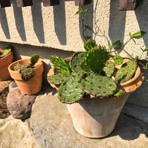 四季を通して屋外放置な サボ鉢たち。 たまに覗くと増殖してる ワイルドさがたまらなく可愛い~😆💕 …と植物に興味の無い友人に言ったら怯えられました😂 ちなみに手前のワサワサ鉢は 最初ウチワ1枚からの現状🌵