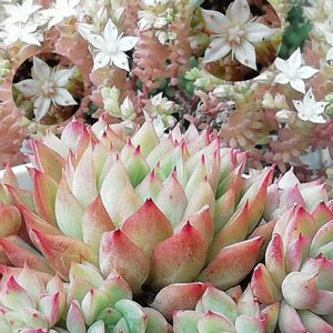 ★ポトシヌム どうも♪ ちょいと仕事が立て込んでしまい、 2日投稿サボってしまったバカ野郎です😵 土日は横浜イベントでしたね‼️ ちっとも行けなかったですけど😭 本日はポトシヌ(ナ)ム♪ ポトシウムやポスティムなどの名前で、 流通しているセダム ディフス(サ)ムの一型です。 正式名は「ディフスム 'ポトシヌム'」 メキシコのサン・ルイス・ポトシ州原産なので ポトシヌムという名称が付いています✨ ディフスムには2種が知られており、 通常のタイプはミルキーウェイと呼ばれてるタイプで、 ポトシヌムは大型になるタイプの位置づけのようです🤔 ・ミルキーウェイで流通。ポトシヌムより小型 ⇒セダム ディフスム ・ポトシウ(ナ)ム、ポスティムで流通。大型 ⇒セダム ディフスム 'ポトシヌム' どちらも冬はピンクに紅葉し、 大きさ以外に花も構造的に大差ないので、 ポトシヌムは基本種の多倍体、つまり、 基本種より染色体数が多いタイプとされています。 小難しい話はさておき、 ミルキーウェイで流通している中にも、 育ててみたらポトシヌムだったってことがあります💦 市場ではちゃんと区別されていないようで、 ピンクに紅葉するからミルキーウェイ!イエーイ!✨ みたいな感じなんでしょう(笑) 葉っぱの形とかよく観察すると微妙に違うんですけど…😅 また、「セダム ディフサム」の名で、 パリダム系のものが売られていますが、 紅葉こそするものの、全体ピンクにはなりませんので、 ご購入の際はお気をつけください😑 -∴-∵-∴-∵-∴-∵-∴-∵-∴-∵-∴- Sedum diffusum 'Potosinum' セダム ディフスム 'ポトシヌム' 和名 不明(情報募集中♪) 別名 ポスティム ポトシウム ポトシナム ディフサム シノニム Sedum potosinum