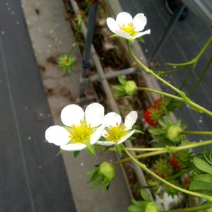 イチゴの花❤️ すごく久しぶりに家族(大のオトナ3人)でイチゴ狩りに♪ やっぱり摘みたてはおいしい! お花もキュートね😆