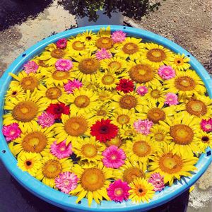 ひまわり🌻 大きな桶にひまわりとガーベラで埋め尽くされてました🤗