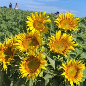🌼ひまわり畑🌼 旗基博さん『ひまわりの約束』の曲で使われたMVのロケ地でも有名になったひまわり畑です🌼 今回満開になった畑がお土産で刈り取られてしまい、まだ蕾が多い畑に案内されたので残念でしたが、自分で摘んだお土産用のひまわりでそれっぽく😜