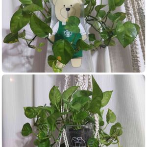 ポトスさん🌿 スタバのドリンクホルダーに入れて飾ろうかと思いやってみたけどちょっと窮屈そうだったのでやっぱり元のハンキングに戻しました😅 とりあえず写真撮ってたので見てみたら実物よりも写真だとなかなかいい感じ🥃🌿
